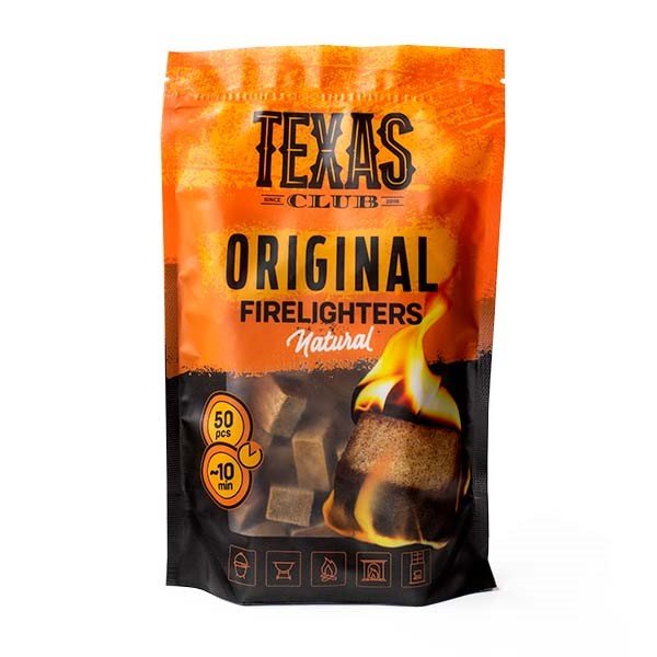 Ekologiški Texas Club Original įdegtukai greitam ir sklandžiam ugnies įkūrimui. Tinka naudoti įkuriant kepsnines, židinius, krosnis, laužavietes ir kt. Pagaminti iš porėtos medienos plokštės užpildytos natūraliu vašku. Pakuotėje 50 vnt.