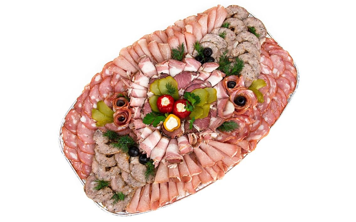 Supjaustytas ir paruoštas didžiausių turgelio rinkinukas ant šventinio stalo.