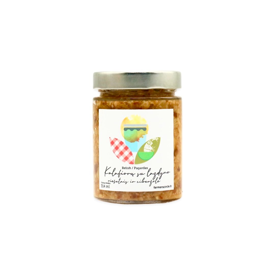 Traškūs kalafiorai aromatingame, saldžiarūgščiame marinate su lazdynų riešutais ir kvapniąja ciberžole. Puikiai dera su mėsos, bei žuvies patiekalais, griliaus, daržovių patiekalais, gardinti salotas, skrebučius karštus sumuštinius.