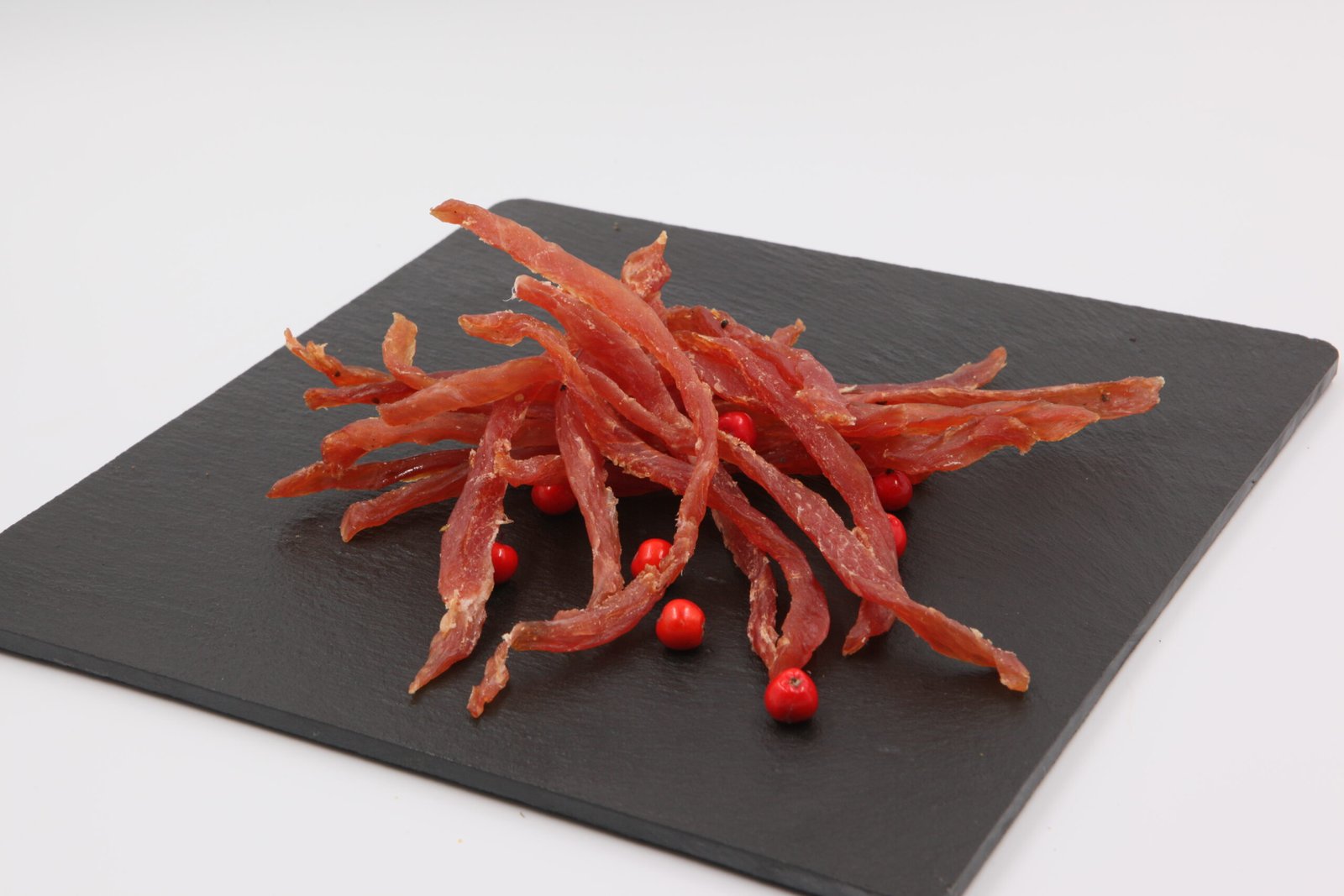 Smulkiai pjaustyta ir džiovinta kiaulienos nugarinė. Puikus užkandis!