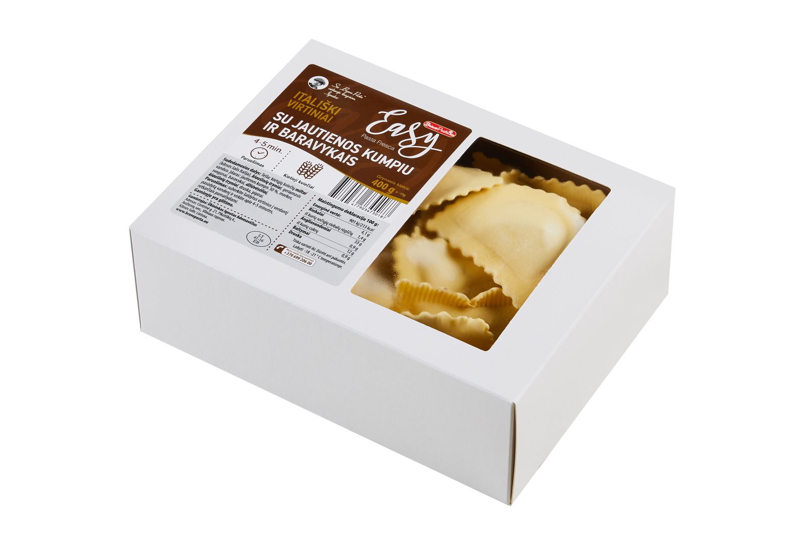 BRAVOPASTA ravioliai gaminami iš aukščiausios kokybės kietųjų kviečių miltų, kurie vežami tiesiai iš Italijos.