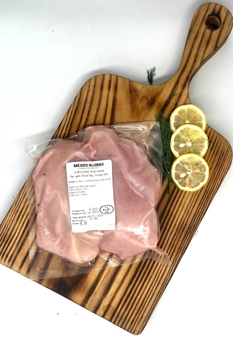 Sudedamosios dalys: vištienos krūtinėlė be kaulo be odos